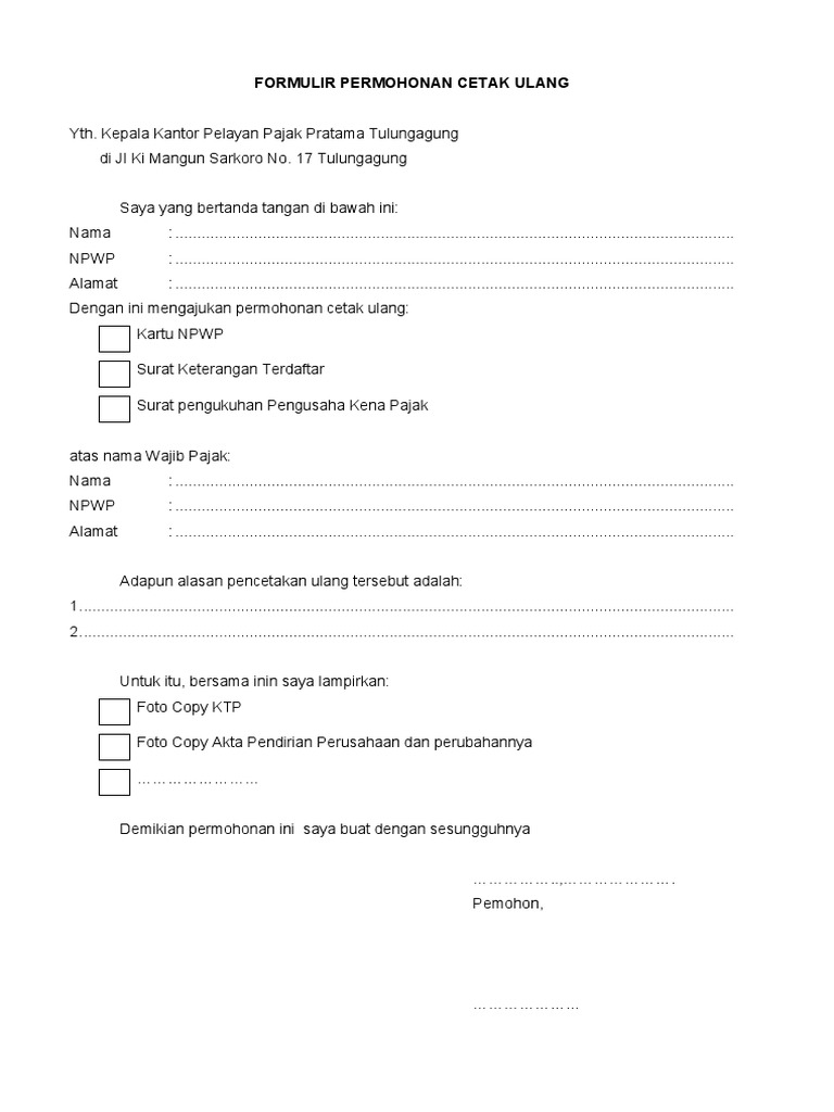Contoh Surat Pengukuhan Pengusaha Kena Pajak Sppkp Bagi Contoh Surat from imgv2-2-f.scribdassets.com Surat non pkp adalah surat yang menerangkan bahwa seseorang baik itu seorang pengusaha ataupun atas nama perusahaan bukanlah pengusaha kena pajak (pkp). Fhoto copy npwp pribadi 3. Sebelum mendapat pengukuhan pkp atau pengusaha kena pajak, seorang pengusaha atau wajib pajak badan harus memenuhi syarat pengajuan pkp dan lolos dari survey yang dilakukan kpp atau. Apa perbedaan perusahaan pkp dan non pkp? Karena non pkp tidak perlu melaporkan surat pemberitahuan (spt) masa ppn, biaya kepatuhan perpajakan. Apabila anda hendak mengukuhkan diri sebagai pengusaha kena pajak (pkp), anda harus mengisi formulir pengukuhan. Alasan penolakan pada umumnya terkendala karena dalam rangka penerbitan pkp, kpp akan terlebih dahulu melakukan survey dan verifikasi ke alamat domisili/kegiatan usaha pengusaha. Persyaratan pembuatan pkp ( (perusahaan kena pajak) adalah sbb :